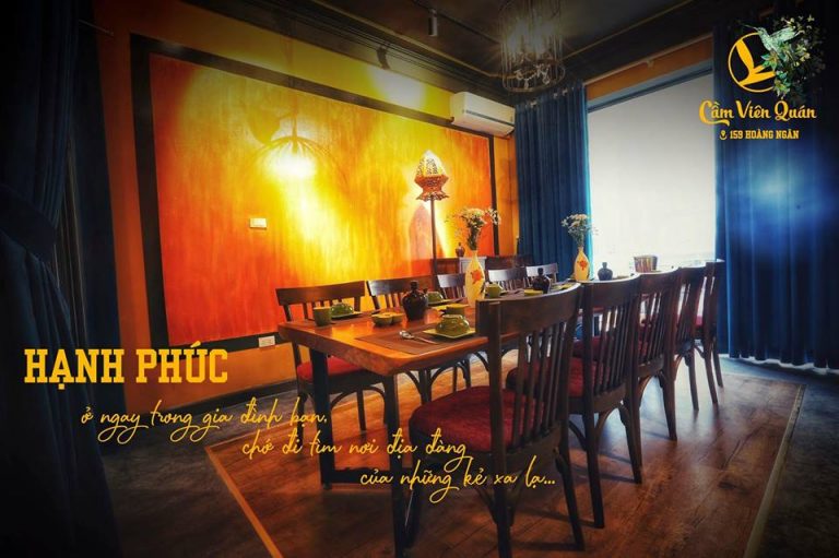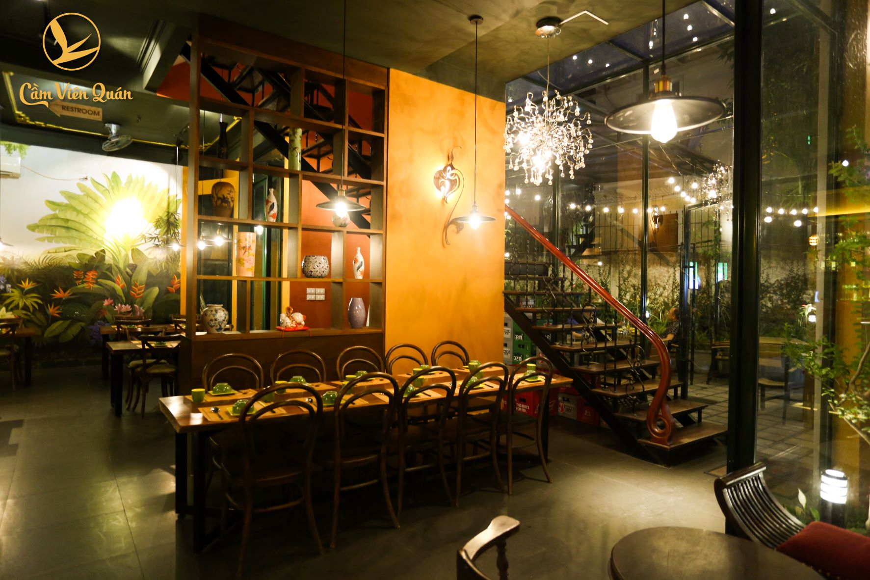Tọa lạc trên phố Hoàng Ngân, CẦM VIÊN QUÁN nổi bật bởi không gian hoài niệm, ấm áp và thân tình, một nơi để thực khách có thể trốn khỏi những xô bồ, vội vã của bộn bề cuộc sống. Khu vực trong nhà hay ngoài sân đều được thiết kế theo phong cách Đông Dương, vừa lịch sự lại vừa tạo cảm giác thân quen. Nếu muốn riêng tư hơn nữa, bạn hoàn toàn có thể lựa chọn hệ thống phòng VIP trang nhã, sức chứa từ 20 – 50 người.